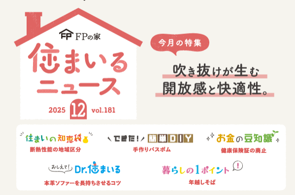 本ウェブジャーナルでは、家づくりに役立つ情報をお伝えいたします。今回は、FPの家で月に一回発行している「住まいるニュース」をアップしました。暮らしに役立つ情報が満載です!